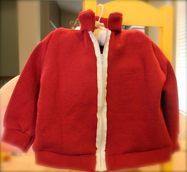 I instantly knew I wanted to make it into a zip up sweatshirt for my son. My husband and four of his five brothers all went to OU. So...football season is big in our house and I wanted to get a sweatshirt for my little baby Boomer. **Because this needed to fit next fall, I made it a little roomy for growth.**